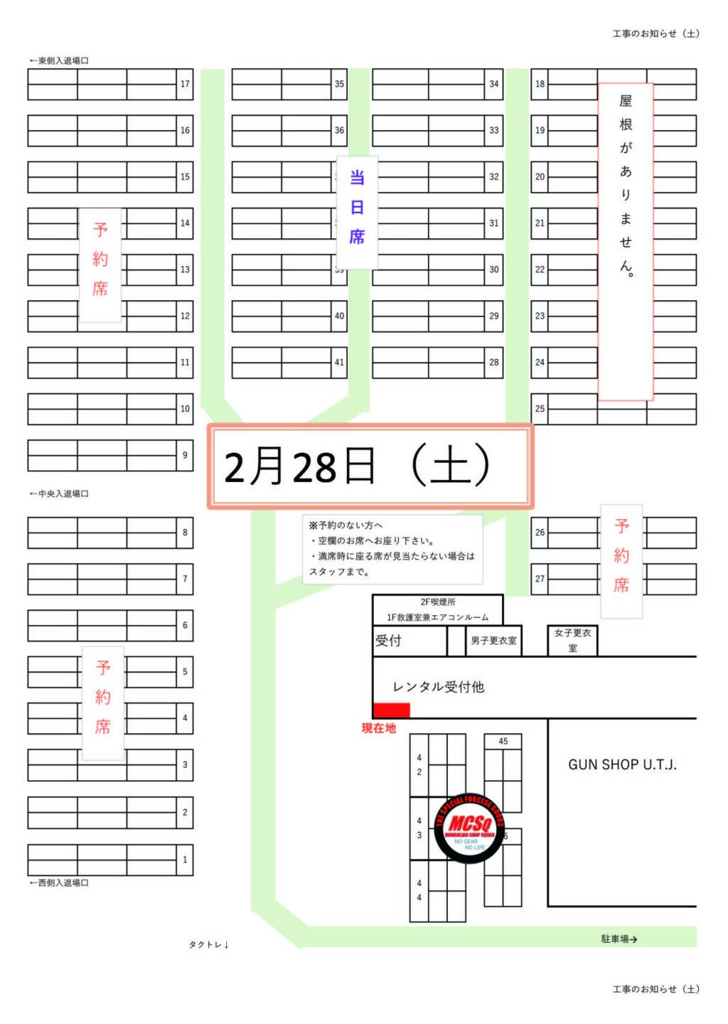 この作業に付きまして、2026年2月28日(土)はセーフティ18番から25番までは屋根がない状態の青空セーフティとなります。